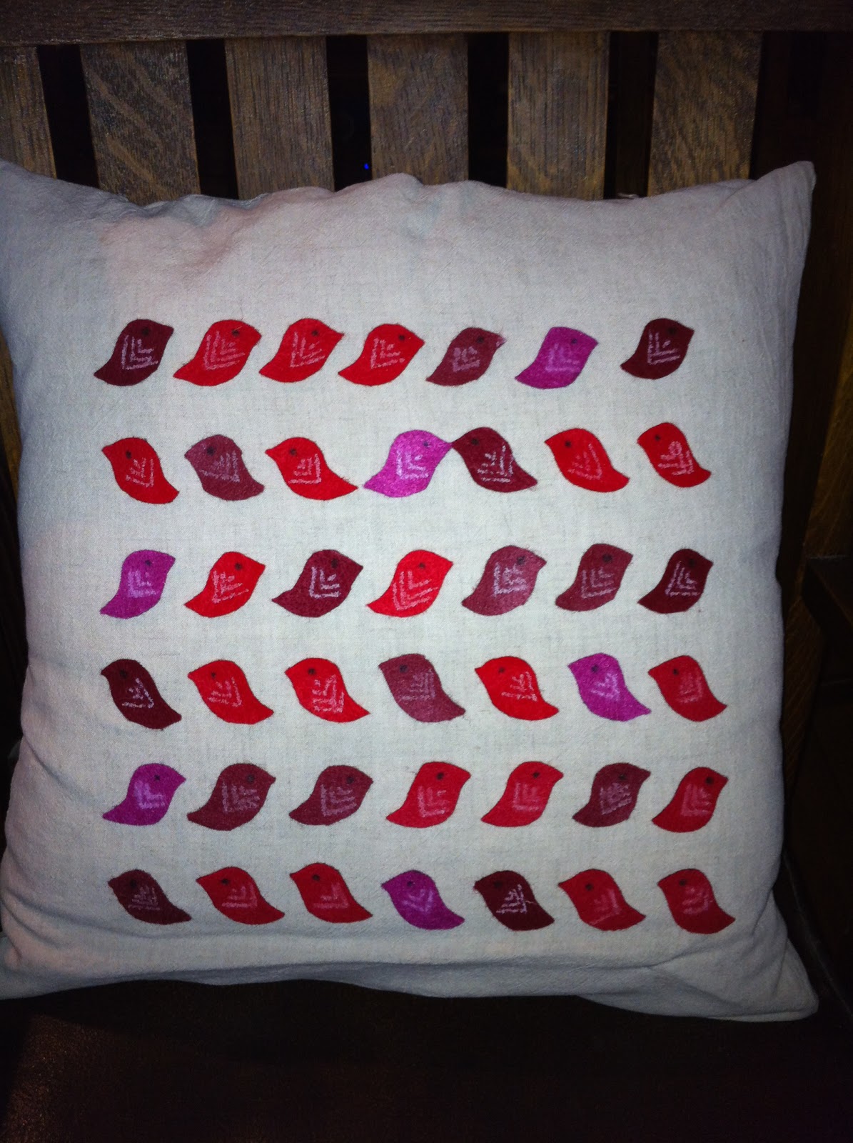 One project that I completed about two weeks ago in honor of valentine's day was a little love bird pillow. It is actually sold on etsy and looks gorgeous, with all the birds being hand stitched, but at $55, it was well out of my price range.
