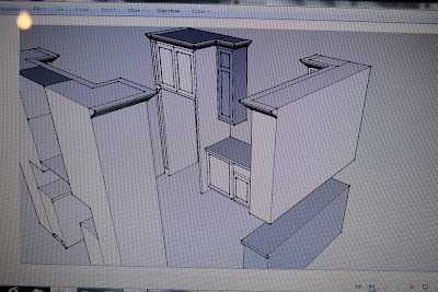 I'm super excited to share sketch ups of the first kitchen bid that I just got this morning. And even more excited to say that I did not faint or swoon or even gasp at the price. While the price is really overwhelming, it could have been much much worse. I am optimistic that we can get this bid to work within our financial constraints, even if we need to tweak a few things first. We still have one more cabinet builder to meet and a couple more bids to receive after meeting with contractors, so we will have to see where the rest of the bids come in.